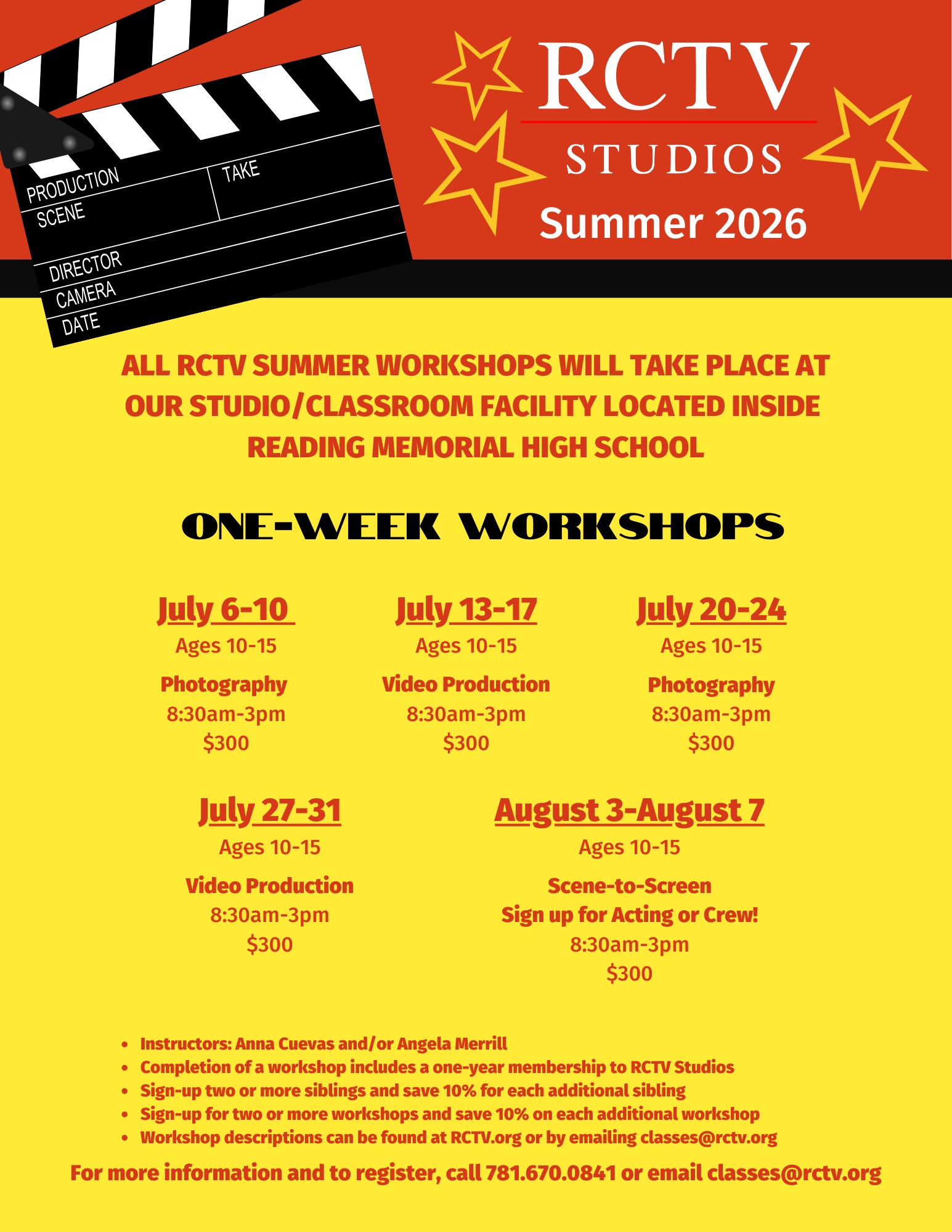 ALL RCTV WORKSHOPS WILL TAKE PLACE AT READING MEMORIAL HIGH SCHOOL IN OUR CLASSROOM/PRODUCTION SPACE